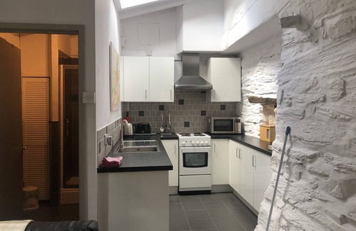 The small but cosy open-plan cottage has a lounge with TV and DVD player with beamed ceilings leading through French-windows to a small balcony overlooking the estuary and Cader Idris mountain range. Off the lounge is the bedroom with a double bed, the shower room and well equipped kitchen/dining area. There is an electric cooker, fridge and microwave oven.