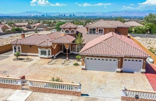 Vegas Villa overlooks the great Las Vegas skyline as it sits on over 1/2 acre. It is a 10 min drive to Downtown Las Vegas and 20 min drive away from the Las Vegas Strip. The villa has been recently renovated and has many unique features. Just a short drive past the gate and through desert landscape the Vegas Villa sits on.