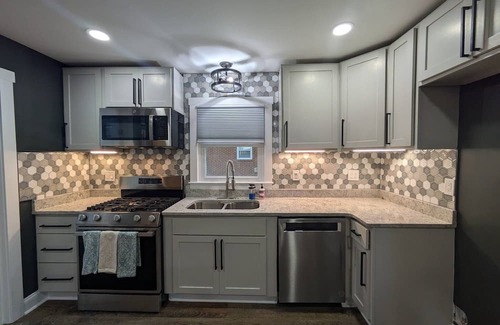 > Culinary convenience: a fully equipped kitchen with top-of-the-line appliances, including a stove, oven, dishwasher, microwave, and a Keurig coffee maker, to fuel your adventures.