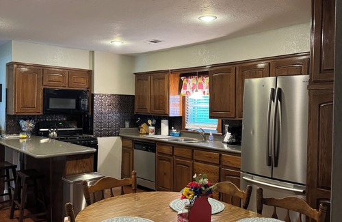 Rosewood cottage is a charming little house sitting in the middle of town. It consists of three bedrooms and one bath with a fully stocked kitchen, a with a desk and monitor and a washer and dryer available for use.