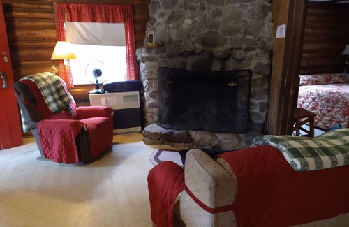Originally built in 1954, this single-level log cottage features a vaulted ceiling with a field-stone fireplace, woodstove and monitor heater. Complimentary firewood is provided in an outdoor woodshed. The cottage offers a cozy kitchen, dining/living area, and a bathroom with shower. There are three bedrooms; one bedroom has a double bed and two have 2 twin beds. Linens and towels are provided. The screened porch overlooks Robinson's Pond and is a short walk to the swings, badminton/volleyball net and swimming area. There is an outdoor charcoal grill and picnic table. Free WiFi is included.