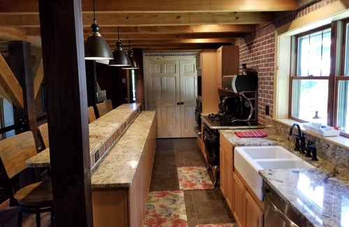 The Lodge is a vintage, great-timbered apple barn lovingly converted into a modern retreat that retains its mountain heritage and charm. Reclaimed wide plank flooring, historic brick, massive wooden beams reaching up to a 27 foot ceiling, and touches of days gone by offer the sense of gentler time. Yet along with the past, you will find that The Lodge's rustic elegance comes with all the modern conveniences.