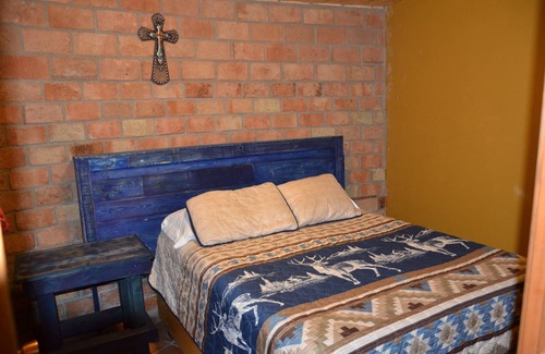 Dos Lunas is a rustic off grid cabin located in Big Bear Canyon, New Mexico ten minutes away from Bonito Lake. The cabin offers a kitchen, dining area, an open living room with fireplace, three bedrooms and bathroom. You can barbecue on the private deck with a stunning view of the mountains and wild life. The cabin is located on a private road next to Bonito Creek and several hiking trails and Runnels Bonito Stables.