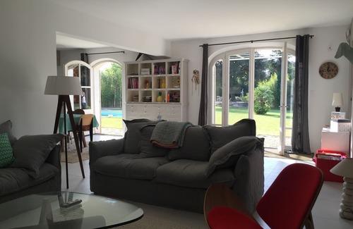 5 min drive from Saint Rémy de Provence, contemporary Mas totally conditioned of 200m, quiet, and yet 2 steps from the village center, beautifully wooded 2000m² private garden with part of Olives, pool secured by a curtain electrical, covered terrace of 40m² with BBQ and plancha, Pool house with awning and chairs for lounging, 4 bedrooms from 13 to 25 m² and 3 bathrooms, nice living room with large fireplace with equipment to listen to music and watch TV, modern kitchen equipped open on living room: refrigerator, oven, microwave, induction hob, dishwasher, corner office with internet ADSL wifi.