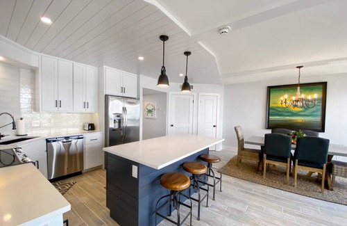 With comfort and luxury in mind, each of the 2 bedrooms is spacious, has premium king size beds with top of the line linens, coastal themed furnishings & 55” smart TV's. The master bathroom features a walk-in shower with bench seat and custom waterfall tile accent while the guest bath has a modern tub with beautiful tile surround.