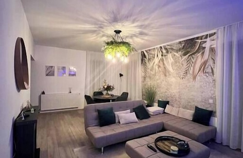 Welcome to Scandiland Apartment, a luxurious high-end accommodation that exudes modernity and comfort. The exclusive decor and designer furniture create a cozy atmosphere. Located in a tranquil residential area in Brasov, the property offers the privacy and intimacy needed for a perfect and relaxing stay. You'll have access to a dedicated parking space in the exterior residential parking lot and offers everything you need for a special weekend, a holiday destination, or a romantic getaway