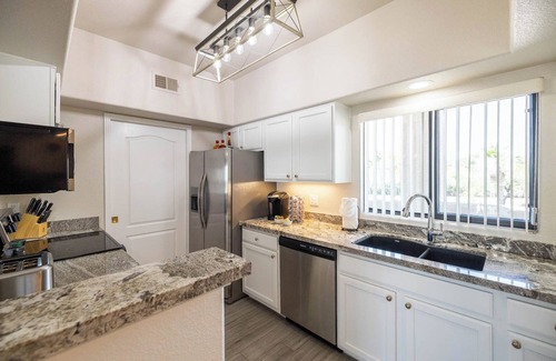 Get ready to TEE off your unforgettable stay at this cozy Fountain Hills desert condo. Golf enthusiasts will love the proximity to many award winning golf courses including Desert Canyon, We-Ko-Pa and Eagle Mountain Golf Clubs. Witness Fountain Hills’ grandeur, splash in our sun-kissed heated community pool and hot tub, or enjoy the outdoors in the many walking and hiking trails nearby. Whether it's fairways with friends or a winter getaway, this spacious nook is the perfect place to call home.