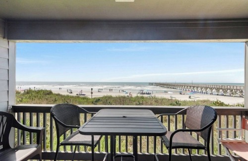 Balcony work begins Feb 17, 2025 with no ETA for completion. Noise will be present, and parking will be affected. Sections of the parking lot will be taped off and not available for use. Use of the balcony may not be available.When deciding on your next family vacation getaway why not consider Sea Cabin 120 located in the most beautiful backdrop oceanfront setting by the sea. This gorgeous one-bedroom with one beautiful bath vacation rental condo accommodates up to four guests perfectly. Loaded with the best in amenities including a spacious inviting pool deck with chaise lounge chairs, a blue shimmering outdoor swimming pool with pool rafts and an outside shower, we promise you will never say you are bored.Most guests spend every day at the vast Atlantic Ocean just outside your door at Sea Cabin 120. Sixty miles of sandy beach reach on forever inviting you to stroll along collecting colorful shells into your wicker baskets. Search for sea glass and sea turtles along the way and take pictures to make scrapbooks reflecting on your days spent at the beach with your family. Water sports are plentiful including skiing, surfing, snorkeling, swimming, jet skiing, kayaking, paddle boarding and even parasailing. Dive into an adventure of fun and sun when you stay at this marvelous family resort.A dreamy oceanfront master bedroom awaits you at Sea Cabin 120. Sink into the plush queen size bed where sleep will be no problem with the soothing sounds of the sea just outside your window. There is also another queen size bed in this condominium. Free WIFI is included with your vacation reservations as well as two flat-screen TVs, two DVD players, central heat and air conditioning and an elongated outdoor balcony that boasts the perfect views of the sea. Take in the beauty of this most pretty seaside escape while enjoying hot cocoa in the evenings with the kids.A journey to the sea will have you exploring this most beautiful oceanside town. Here you will discover the SkyWheel, Family Kingdom Adventure Park, the theaters, the Boardwalk thrilling water parks, historic museums, nicely priced large outlet malls and championship golf courses and fun mini golf courses. There are so many scrumptious restaurants where you will find New York steak, Mexican tacos, Italian pizza, spaghetti, lasagna, garlic bread, southern grilled chicken and whatever else your heart desires. Come enjoy the most amazing oceanfront stay at Sea Cabin 120 in the beautiful Cherry Grove area of North Myrtle Beach, South Carolina.
