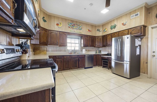 LINENS/TOWELS NOT INCLUDED (packages available to rent upon request): This beautiful 6 bedroom, 6 full bath oceanfront house is ready to make your dreams come true. Each bedroom has it's own full bath for your privacy and convenience. All the modern amenities that you would need to make your vacation dreams come true. All kitchen appliances, multiple TV's and large ground level TV room for those night owls!! Literally "see" forever up and down the coast with endless views. The upstairs creek side porch provides views of watching your family kayak or boat on the channel. Lovely screened and unscreened porches. The stationary and covered creek dock is perfect for launching kayaks, floating or catching dinner. Bedrooms: 6. Ground Level: 2 Twins. Main Floor: Queen, Queen, Queen; Upstairs: King, King. Baths: 6 Full. NO SMOKING. NO PETS. For security purposes, please note this property has security cameras solely for visual (no audio) monitoring outside the property only and are not present inside the property.