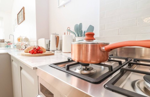 Amenities: Heating. dual fuel oven, microwave, fridge with icebox freezer, slim-line dishwasher, kettle, toaster, washing machine. Wine fridge. Smart TV, Freeview, WiFi, selection of books. Bed linen and towels inc. in rent. Unallocated on-road parking. Garden with furniture. One well behaved dog welcome, dog bowls and dog sofa provided. Shop 0.2 miles, pub 0.1 miles.