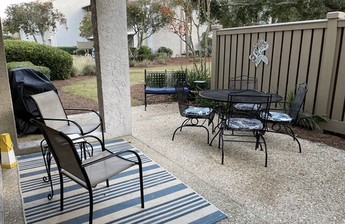 Ground Floor !! This 1300 sq. ft. recently renovated villa is located next to the South m Beach Marina in the Sea Pines Resort. It is a 2-bedroom, 2-bath, ground-floor unit with a large patio. You can watch the sunrise and sunset from our location!