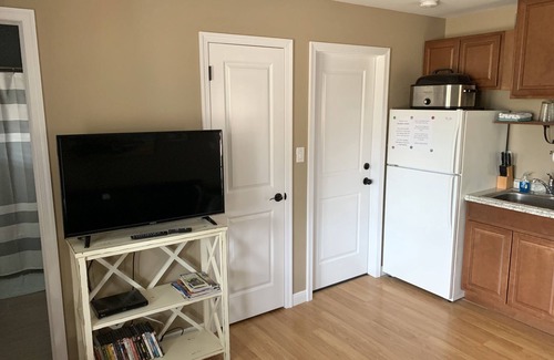 Quiet Mother In-Law apartment with private entrance on a dead end street. The apartment is connected to the main residence via a laundry room with a keyed door on both sides. The bedroom has a Queen size memory foam mattress, TV and DVD player, Roku. Living area has a Queen size sleeper sofa with memory foam mattress, 42in TV with a Roku to access Netflix, Disney +, Hulu, etc. 52+ channels are available on the Sling TV app. Outside Entry door has a keypad that will be programmed with a 4 digit pin specifically for your check in to check out time. All linens and towels are provided, washer and dryer are available for stays longer then 7 days upon request. Owners are next door and happy to help with anything we can, restaurant recommendations, directions, activities, beach tags, etc.
