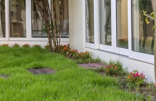 - Offers a private garden with outdoor pool.