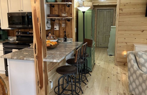 Quiet Tranquility with stunning sunsets, surrounded by the Weeks Bay National Estuary. You will immediately feel excitement the moment you pull around the curve and down the drive, because you can see the sun dancing on the water beyond the house. Walking inside you know you made the right choice. The cozy wood walls wrap you in serenity while the new remodel has all the essentials to make for a wonderful relaxing get away! So many original features were left in this old cabin and like the original wood walls, floors and doors in some of the rooms. Custom nooks and crannies make for perfect spots to take your work with you. The sectional sofa is large enough for a group to gather on. And the open floor plan can accommodate extended family and friends, plus the pets, with an easy and natural flow. We had our family here for this past Easter Gathering. There were 18 of us and two dogs! The oversized back porch make rainy days the best days as you watch the storms roll in without fear of getting wet! Take an adventure with the kayaks ! Throw out a line, cast a net, put out a crab trap or just sit on the dock! The sunsets are spectacular! The birdwatching is amazing. You will see all different types of fish and often have Dolphin visits. My sister is partial to the east side view where we have a sweet little porch to drop your groceries when you walk up the stairs or to sit and sip your morning coffee and bird watch. We offer mariner whips free of charge and a boat lift for an additional fee. The dock is shared with the rental "The Last Shack" which is adjacent to the property. Both homes can be rented for a combined experience to sleep 20! The Last Shack sleeps 8. The Last Cabin can sleep 12. Moments from Magnolia Springs and only a 15 minute drive into Fairhope or Foley or a 30 minute drive to the beaches. Quite simply, I could stay here awhile, and found it hard to leave!!