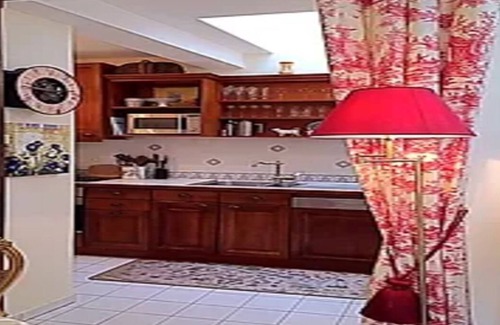 The kitchen is fully equipped with amenities with French standards, dishwasher, four burner stove top and oven, a full size refrigerator plenty of storage, and a washer/dryer combo. Wooden cabinets, open shelves, tile counters contribute to the French Country decor. The kitchen is fully equipped with utensils, dishes, gadgets and both drip style and French press coffee makers, which makes it a sunny, bright place to create fabulous feasts and simple fresh meals with all the inspiring ingredients you'll find around you.