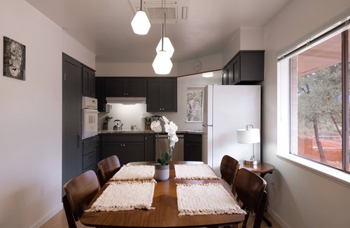 Located in a quiet, mature neighborhood in West Sedona, this stylish 2-bedroom upper-level duplex offers comfort, privacy, and incredible access to local restaurants, coffee shops, Whole Foods, and hiking trails—all just minutes away.