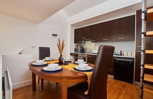This fantastic 4 bedroom serene town house in Coventry can sleep up to 10 people, with 6 individual beds, and is set over 4 floors. It has a large Kitchen/ Dining/ Living room on the second floor, which is home to a 55inch Smart TV and super fast Wifi, as well as a double sofa bed.