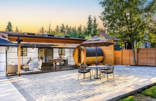 Welcome to our ultra-modern SeaTac retreat! Just 5 minutes from the airport, this home offers the perfect blend of relaxation and entertainment. Unwind in the 6-person barrel sauna, challenge friends to foosball or corn hole, or relax on the hammock and comfy outdoor furniture by the fire pit. With a BBQ, basketball hoop, and a variety of family games, there's something for everyone. Luxurious Massage chair. Perfect for layovers or extended stays, experience comfort and convenience in style! Your SeaTac getaway awaits at this brilliant 4-bedroom house. With 1 king bed, 2 queen beds, and 1 twin bed, guests will find the accommodations delightful. The 2 bathrooms come equipped with a bathtub and hair dryer for added convenience. We think our place will help you experience everything SeaTac has to offer.