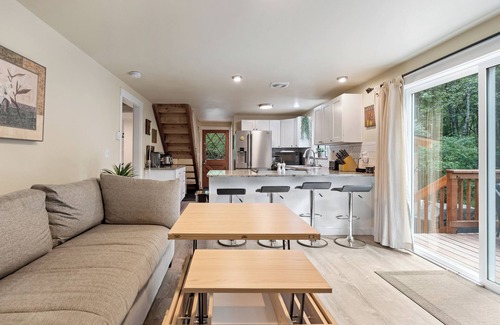 Take it easy at this tranquil mountain getaway, just minutes from the entrance to Mount Rainier National Park. Whether you're hiking scenic trails, roasting s’mores by the creekside fire pit, or relaxing by the fireplace with a book or board game, this cozy cabin is your perfect retreat. Enjoy the hot tub, spacious deck, and BBQ (first propane tank included)—and don’t be surprised if friendly deer wander by. Book your stay today and experience relaxing creekside cabin comfort near Mt. Rainier!
