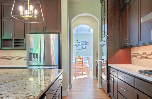 • Remodeled Kitchen Equipped with Granite Counter Tops and a Spacious Center Island