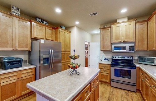 After a day of outdoor fun, cozy up in front of the dual-sided gas fireplace or let the AC splits cool you down if it’s hot outside. Stream the latest release or pop a movie into the DVD player. Even better, toss some burgers on the gas grill and dine alfresco in your private backyard, then finish the night with a soothing soak in the hot tub. Sleep comes easy in any of three serene bedrooms.