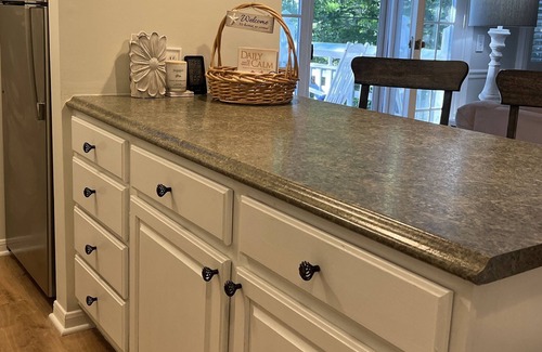 • The kitchen is fully equipped with electric stove, dishwasher, microwave and full size refrigerator, Keurig coffee machine and basic kitchen ware