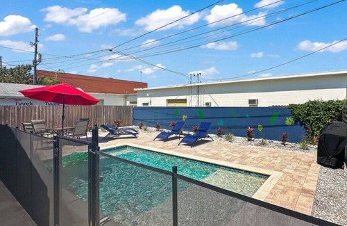 Welcome to our Freshly Updated 2-bedroom, 2-bath home in North Kenwood, St. Petersburg, FL! Enjoy the private backyard and easy access to Grand Central District, downtown (8 mins), and the beach (15 mins). The airport is just 25 mins away. For added convenience, we offer a washer/dryer and contactless entry via smart lock.