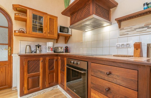This enchanting property offers accommodation on one floor and 115 m2. Stylistically, it's a mix between warm colours and rustic details, making you feel like home from the first moment. There is an invitingly sitting-dining room with A/C, where you will be able to enjoy long table-talks with your loved ones. Furthermore, this room has a television (Satellite-TV) and a fireplace. The open kitchen with induction hob is fully-equipped. Respecting the bedroom, it is fitted with a king size bed (2 m x 2 m) and a shower bathroom en-suite. If you travel with a baby, we can supply one cot and one high chair. You will have access to a washer, an iron and an ironing board.