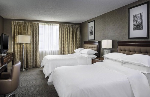 Sheraton Oklahoma City Downtown Hotel offers 396 accommodations with coffee/tea makers and hair dryers. Pillowtop beds feature premium bedding. Flat-screen televisions come with premium cable channels. Rooms have partially open bathrooms. Bathrooms include shower/tub combinations and complimentary toiletries.