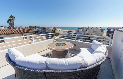 As you step inside, you'll be greeted by a fully stocked kitchen, complete with a stove, oven, refrigerator, and all the necessary appliances to whip up delectable meals. Gather around the dining table or enjoy alfresco dining on the rooftop balcony, taking in the breathtaking beach views around the fire pit.