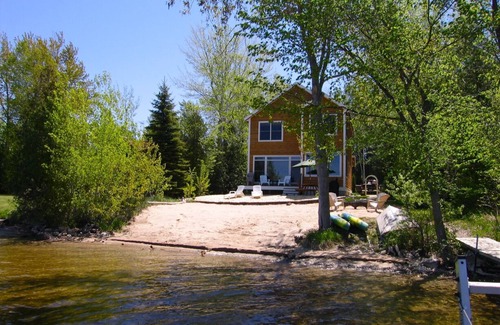 The Beach Houseon all-sportsUpper Herring Lakeoffers 80 feet of private sandy beach frontage just 40 feet off the back deck! You may even catch a glimpseof the eagle that nests nearby.