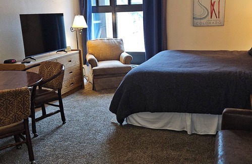 Studio in the heart of Copper Mountain located in the Mountain Plaza building. This fully furnished studio includes a small kitchen, dinette. The living room with smart TV has a king bed and a twin sleeper for your little one. Building has everything you could need - garage parking for one vehicle, hot tub, ski lockers, Ten Mile Tavern is also located in the building for your après ski without needing your coat.