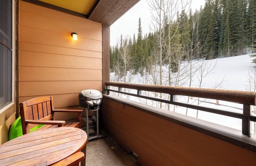 Our one-bedroom condos are convenient to everything in the resort: the tubing hill, skating pond, multiple bars and restaurants, and the ski rental shop. Sunny, bright and cozy at 590 sq. feet, we're located on the fourth floor in an elevator building with laundry right down the hall and a Starbucks just steps away.