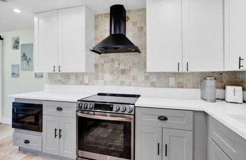 Newly remodeled 3BR/2BA waterfront home with private dock, fire pit, grill, and outdoor seating. Perfect for families or groups to relax, fish, and gather by the water. Inside, enjoy a modern open layout, fully stocked kitchen, and stylish décor. Unwind with sunsets on the dock or explore nearby beaches, dining, and Gulf Coast attractions for the ultimate Florida getaway.