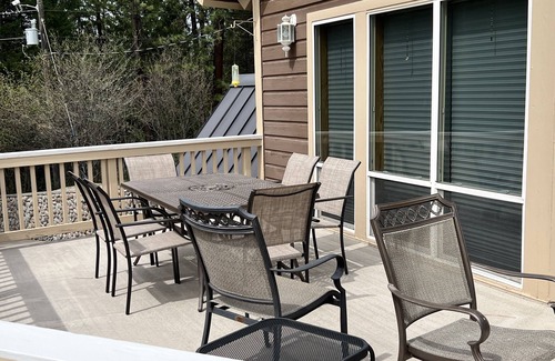 Book this one fast!!! The Slice of Heaven retreat has it all with lots of room for all your family and friends. Located in Terrace Lakes, the cabin overlooks the front 9 fairways with mountain views. When you arrive, you will find plenty of parking for all your guests. First, you will notice the awesome tiled boot room with plenty of space for all your stuff. The cabin has three large levels for everyone to enjoy. The lower has the family game room with plenty of seating to enjoy movies, games, and foosball. For the adults, relax around the custom wood bar before steaming your cares away in the sauna. There is a full bath and a sleeper sofa providing a private sleeping area at night. On the main level, comfortable seating in the living room is perfect for enjoying the fantastic views or just socializing. Granite counter tops invite you to spend time in the homey kitchen with all the pots, pans and necessary items to prepare quick or gourmet meals. The large propane grill is located just off the kitchen on the covered deck with seating area and patio heater. Enjoy meals, games and socializing at the large dining table. Additional seating at the breakfast bar. Down the hall on the main level are two private bedrooms each with a Queen bed and a one full bath. If you head upstairs, you can hide-out in the super quiet loft area. Two guests can sleep comfortably in the loft area trundle bed. Just off the loft, are two private bedrooms, one with King and the other with Queen and another full bath. Heading outside you will find so many exciting things to do – from the large fire pit, horseshoe pit, lots of seating in the covered BBQ area with patio heater, outdoor living is the way to go!