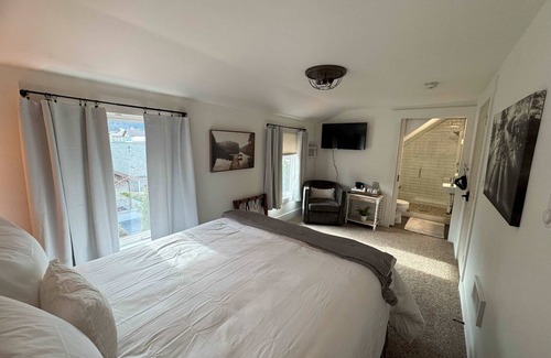 Welcome to Snowcreek Suites BnB – Fir! This fully private, cozy second-floor micro-suite offers stunning views of the Enchantments. Enjoy a spacious walk-in shower, complimentary coffee and tea, a flat-screen smart TV, and a plush Queen bed with 100% organic cotton linens. Shared hot tub. Located in the heart of Leavenworth, you're steps from wine tasting, river floating, dining, and more. Free private parking is included for your convenience. Book now to experience the best of Leavenworth! You won't be disappointed :)