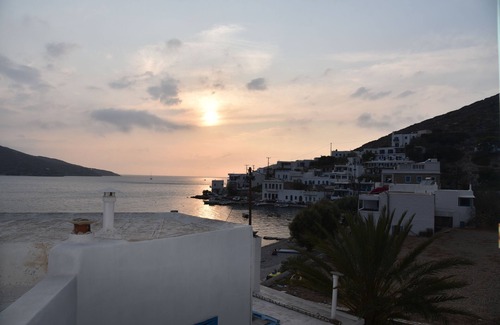 The apartment is 103 m², height ceiling, stone wall creating a comfortable atmosphere and temperature. It has 3 bedrooms with windows looking at the sea, one living room, an average size kitchen fully equipment , a bathroom and a beautiful spacious veranda with panoramic view of Katapola bay, Rachidi and Mondoulia hill (ancient city of Minoa).