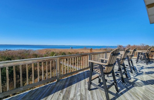 “Somerset,” an exquisite soundfront home, will provide your vacation getaway with beautiful, sweeping views of the Currituck sound and will showcase the beautiful sunsets from the home's multiple levels of decking and from the large, picturesque windows of the main living area! Enjoy crabbing or fishing from the shared soundfront dock or hop in the private hot tub for a nice relaxing soak! If you are seeking even more, fun activities, you will find the Monteray Shores community just what you and your family are looking for…and is conveniently located to the beach access (parking area located one block from the beach), community pool, clubhouse with fitness center, tennis, basketball, and boat ramp access privileges. You will also find a quick bike ride or drive from this home will take you to many nearby shops and restaurants. Bring the whole family for a week they will never forget at "Somerset".