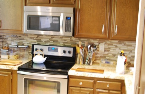 Living room and master bedroom with king sized bed on the tenth hole and great views. Recently renovated kitchen with huge fridge and new stove, lots of pots and pans and other equipment. Nespresso, air fryer, nice wine glasses and silverware.