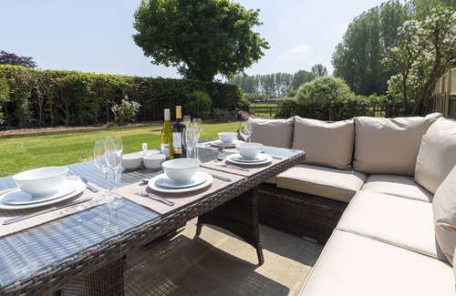 Two sets of French doors encourage you outside to the flower-bordered, south-facing garden with views onto the surrounding Cotswold countryside; with a patio, garden furniture and a charcoal BBQ. You will be hard pushed not to immediately want to fling open the double French doors and collapse onto the Rattan furniture (maybe making a G&T on the way!). Grab a blanket when the sun goes down and you can continue to enjoy the outdoors for hours feeling snug.
