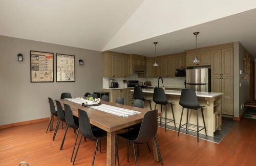 Guests have access to the entire property, including (of course!) the private hot tub and heated pool on the patio. A secured locker is also available for storing skis, snowboards, and bikes — keys will be left inside for your convenience.
