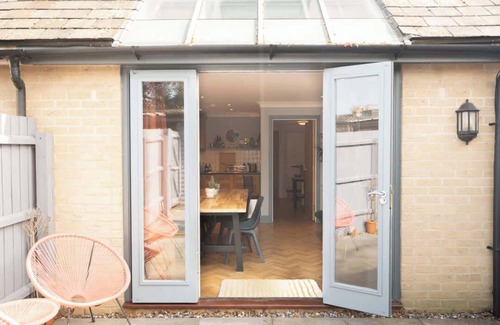 This contemporary townhouse features an open-plan living room and kitchen, complete with French doors leading to a sunlit courtyard. The first floor houses a double bedroom, a twin room with two beds and a full family bathroom. On the second floor, there’s an additional double bedroom and a second full bathroom. Additional amenities include a dining room, cloakroom, gas-fired central heating and double-glazed windows for year-round comfort.