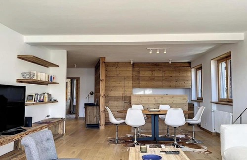 Located at a Prime location (Just 100m from the Cry d'Er gondola, with Starbucks and Sportsbar in the building, 50m to the Coop Supermarket and only 7min walk to the golf course) this stylish and newly renovated apartment will impress you with its magnificent views of the Alps and its spacious 30m2 terrasse.