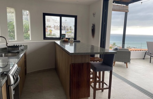 Nestled in the lush hillsides of Puerto Vallarta, only a few blocks from downtown. This enchanting property features breathtaking views of The Bay of Banderas and the surrounding Sierra Madre Mountains. Guests can enjoy privacy with 3 individual units, each with a King bed, full bath and kitchenettes. Perfect for a group getaway where guests can retreat to their private quarters or gather at the pool, palapa bar or rooftop. An additional bedroom & bathroom adjacent to the pool area adds extra space or provides a bathroom and beverage fridge to the pool and palapa bar. Each unit / bedroom has its own private-attached full bath. The rooftop terrace provides a gathering place for morning yoga, breakfast, coffee and then again for happy hour, watch the sunset and grilling an amazing dinner. The kitchen is fully outfitted to prepare meals for entire groups.
