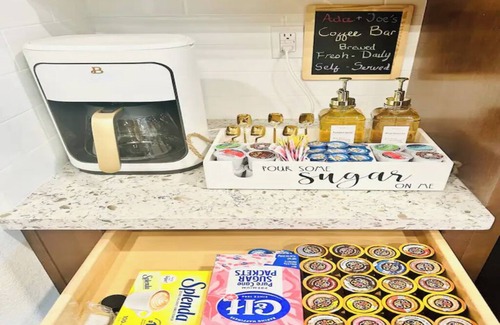 Spacious Great Room: Perfect for family gatherings and entertaining guests. Equipped with a 60-inch Flat-Screen TV, electric fireplace with mood lighting, and plenty of seating. Includes board games such as Jenga, Monopoly, and Yahtzee for added fun.