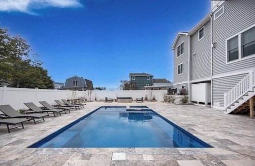 Be one of the first guests to unwind in Ship Bottom at this marvelous, brand new construction house. With 5 bedrooms including 3 king beds, 1 queen bed, and 2 sets of bunk beds, this gorgeous property is perfect for families or groups of friends. The house has 5 bathrooms (4 showers including outdoor shower), AC, WiFi, and dryer/washing machine. Extend the day in the heated in ground pool, including the built-in hot tub, and the fabulous outdoor kitchen. Relax and enjoy the stars while you sit by the fire pit. We think our place will help you experience everything Ship Bottom has to offer.
