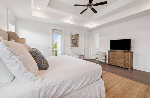 Welcome to Our Oasis, your light-filled 30A escape nestled in Prominence South! This 5-bedroom, 3.5-bath retreat sleeps up to 14 and is perfect for families or groups looking to relax, explore, and make memories. Enjoy two luxurious Primary Suites, a kid-friendly bunk room, and an open-concept living space filled with natural light. You're just a 3-minute walk to the resort-style pool and fitness center, and a 5-minute stroll to The Big Chill for dining, shopping, and entertainment. Whether you're grilling on the patio, biking the scenic trails, or lounging at the beach, Our Oasis is your perfect home base on 30A.