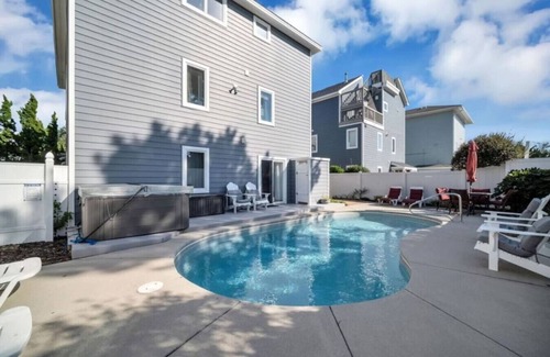 Spacious 7BR Beach Retreat for Families & Groups | Private Pool, Hot Tub & Game Room is located in Croatan Beach. Spacious 7BR Beach Retreat for Families & Groups | Private Pool, Hot Tub & Game Room provides accommodation, featuring Balcony/Terrace, Oceanfront, Accessibility, among other amenities. This House features Balcony/Terrace, Oceanfront, Accessibility, to make your stay a comfortable one.