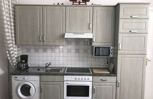 Kitchen and living room have garden view. The bedroom is very quiet despite the orientation to the street.