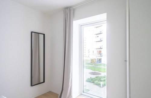 This apartment is located in modern new building by the harbour. It has all the modern necesities, and includes elevator and a private balcony. The apartment has 2 bedrooms, a combined living and dining room, a spacious bathroom and private balcony. All in all a great apartment for a small family or colleagues looking to share accommodation